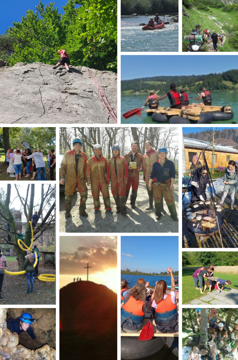 Hier seht ihr Medien und Methoden mit denen wir arbeiten – von erlebnispädagogischen Elementen wie Klettern oder Höhlenerkundungen bis hin zu klassischen Arbeitsmitteln wie Flipchart und Reflexionsmethoden.